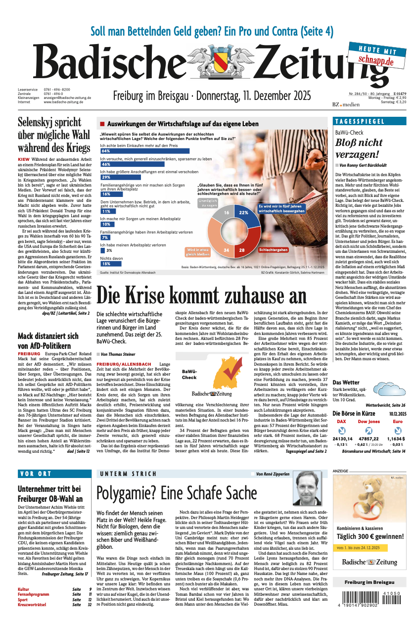 Die angespannte wirtschaftliche Lage sorgt für wachsende Verunsicherung. Obwohl die Bevölkerung die konjunkturelle Entwicklung bereits seit Jahren mit Sorge verfolgt, hat sich das Stimmungsbild im vergangenen Jahr deutlich verschlechtert. Immer mehr Menschen fühlen sich persönlich betroffen: Zwei Drittel achten stärker auf Preise, fast jeder Zweite lebt sparsamer, und rund ein Drittel verschiebt größere Anschaffungen. Auch die Angst vor Arbeitsplatzverlust nimmt zu – sowohl im eigenen Umfeld als auch persönlich.