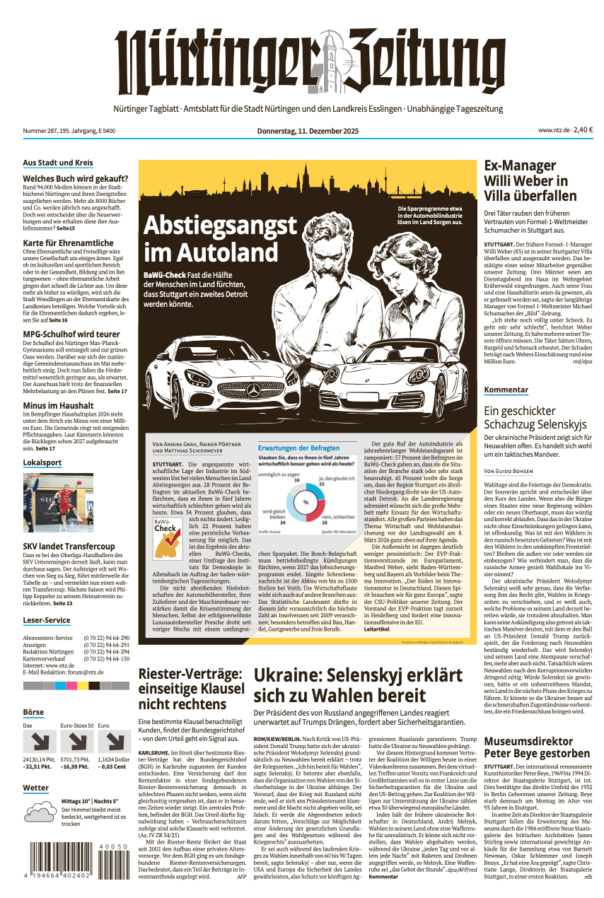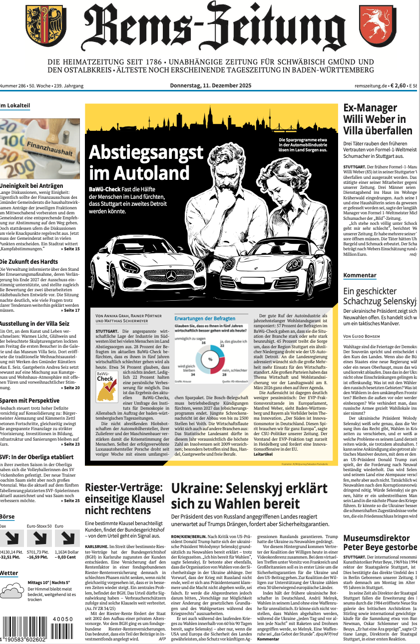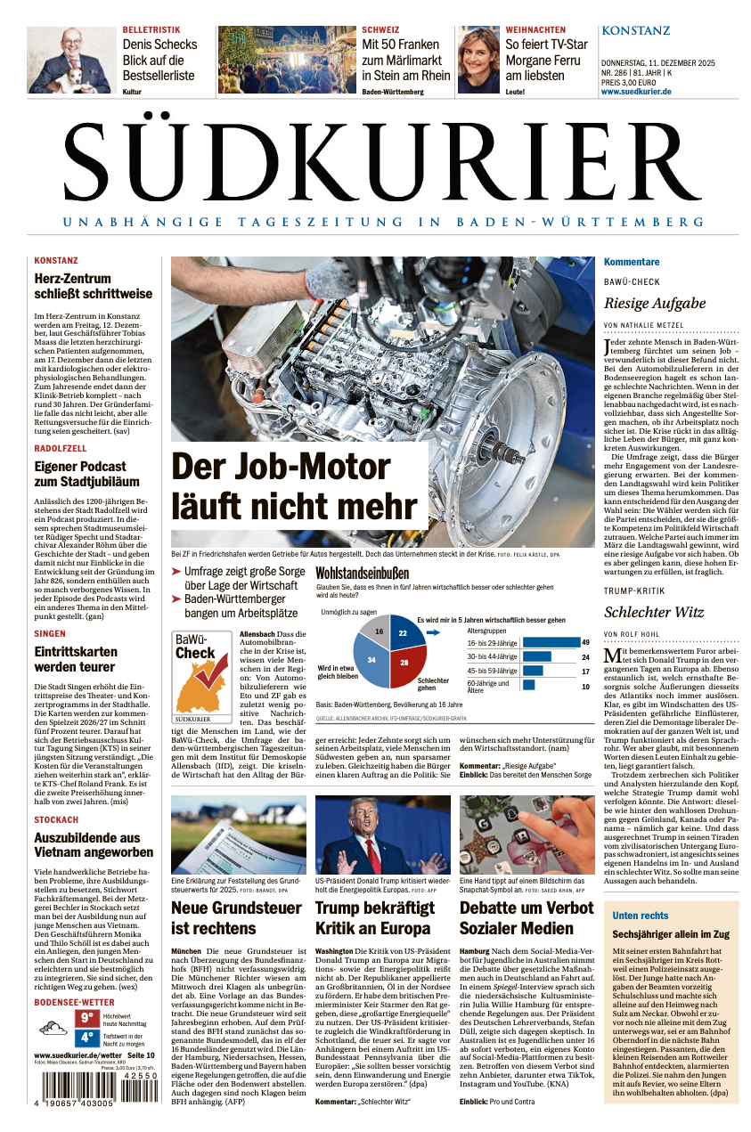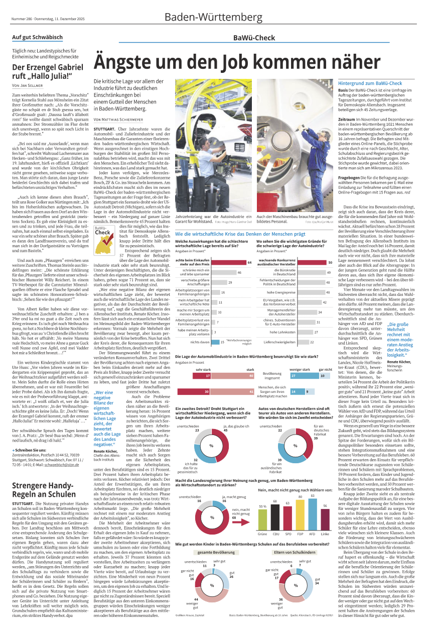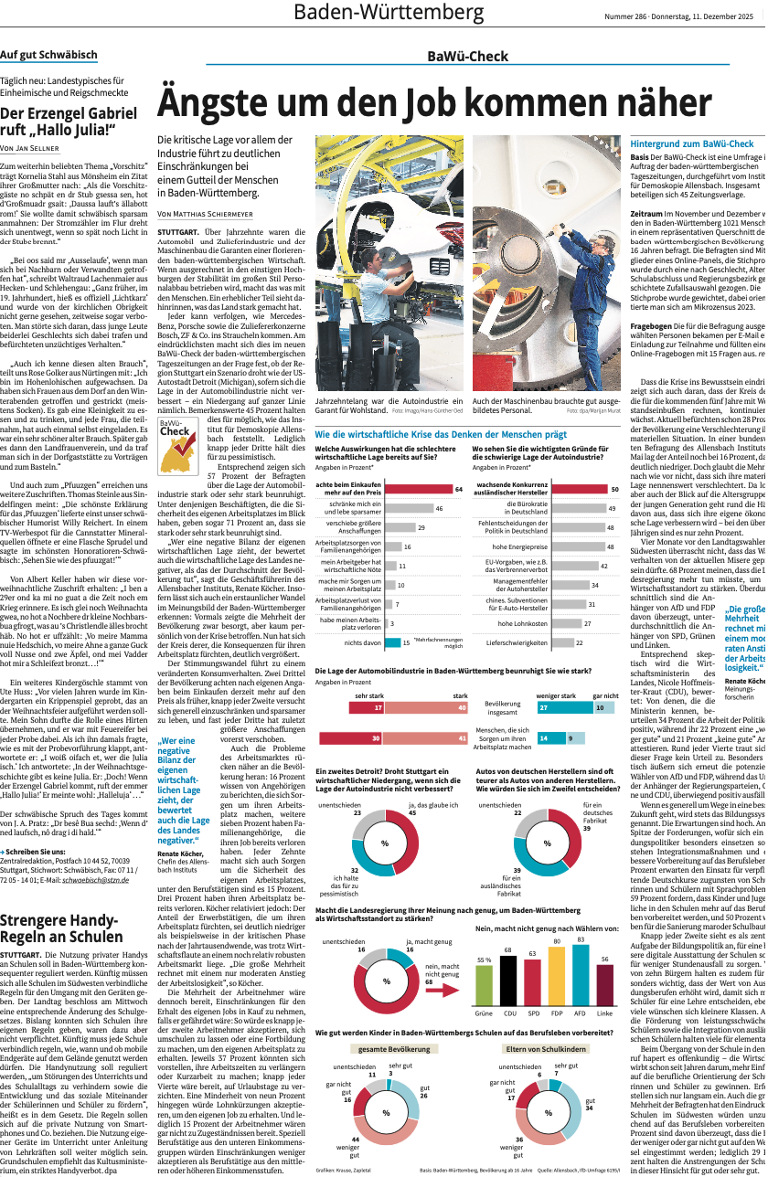 Besonders groß sind die Sorgen um den Automobilstandort Baden-Württemberg. Die Mehrheit der Bürger zeigt sich angesichts der Schwierigkeiten der Autoindustrie stark beunruhigt, unter Beschäftigten mit eigener Jobunsicherheit sogar über 70 Prozent.