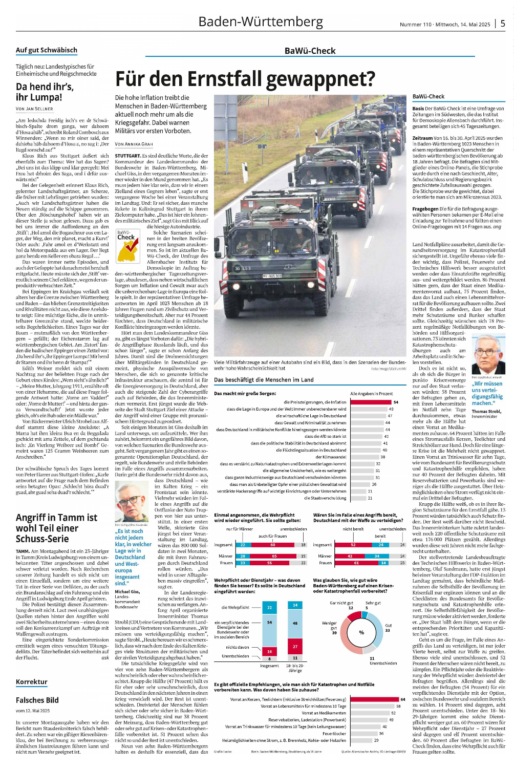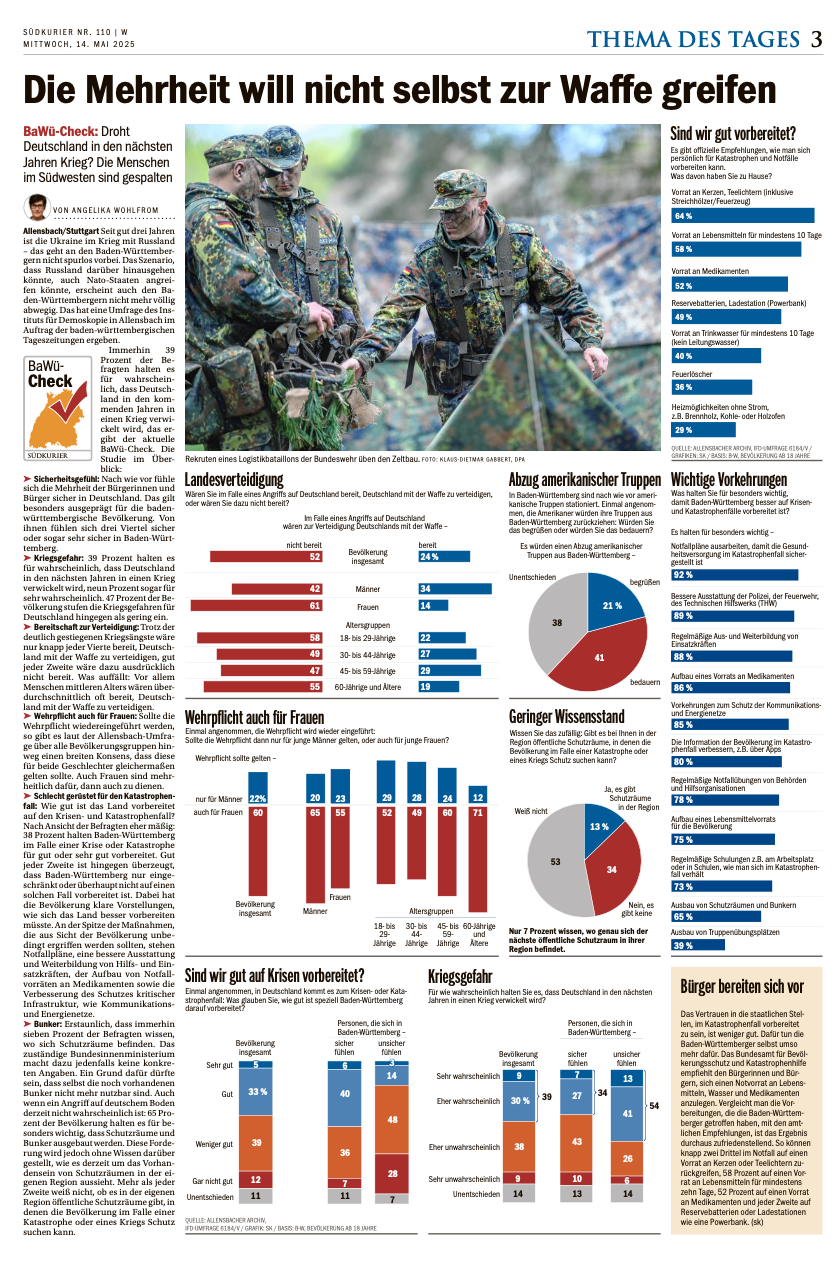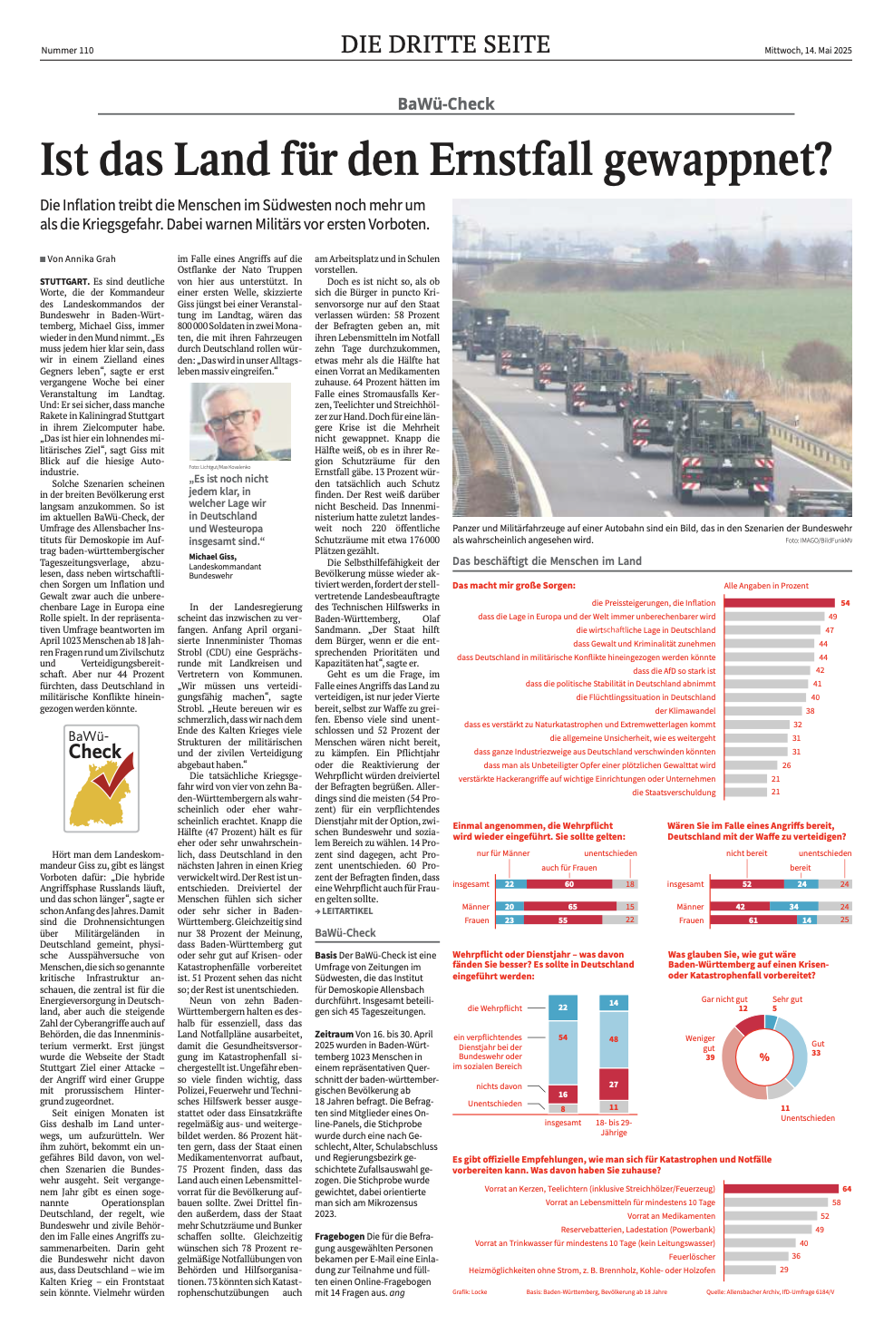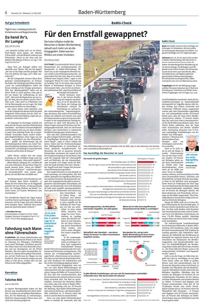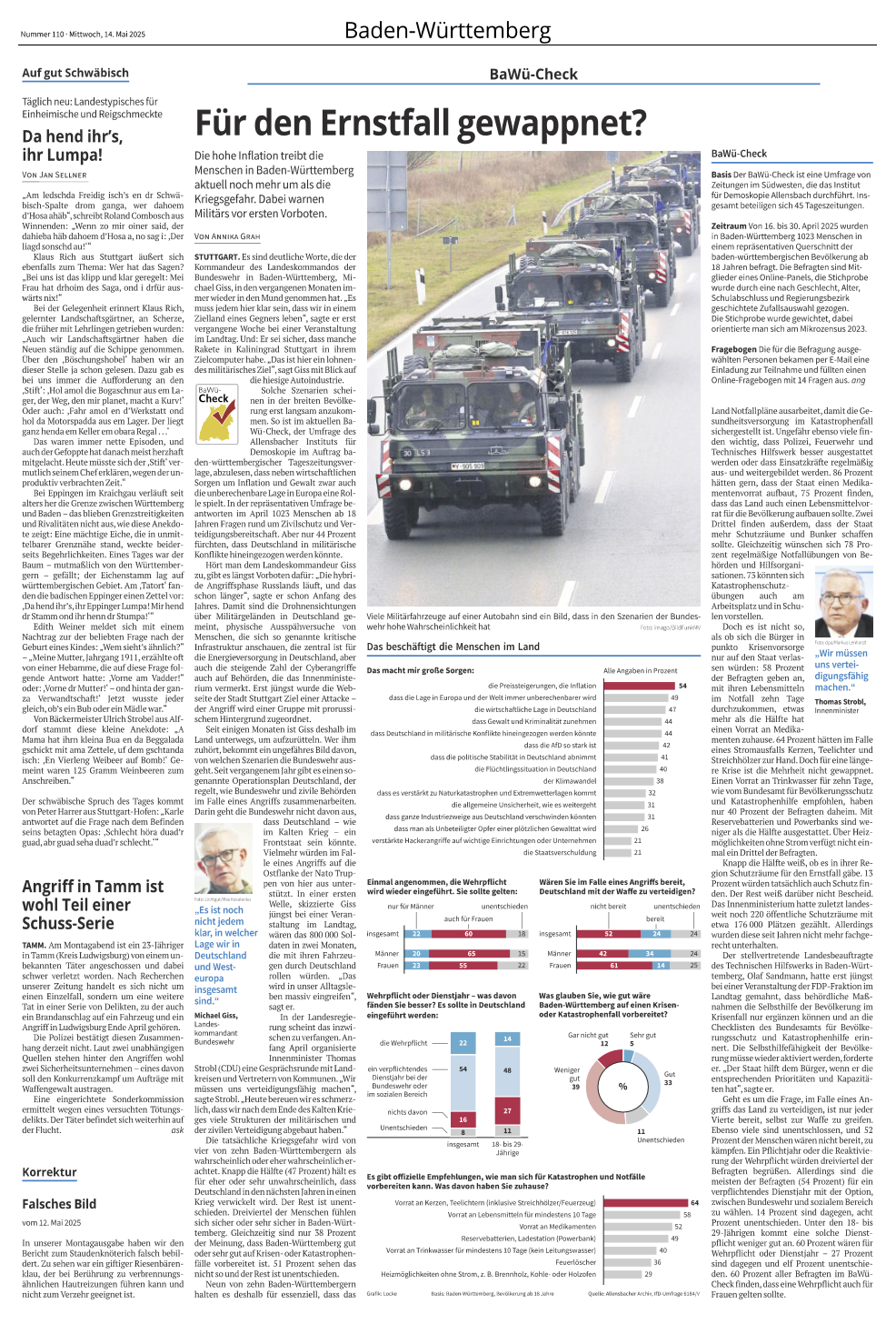 Beim 23. BaWü-Check der baden-württembergischen Tageszeitungen geht es um Zivilschutz und die Verteidigungsbereitschaft der Bevölkerung.
