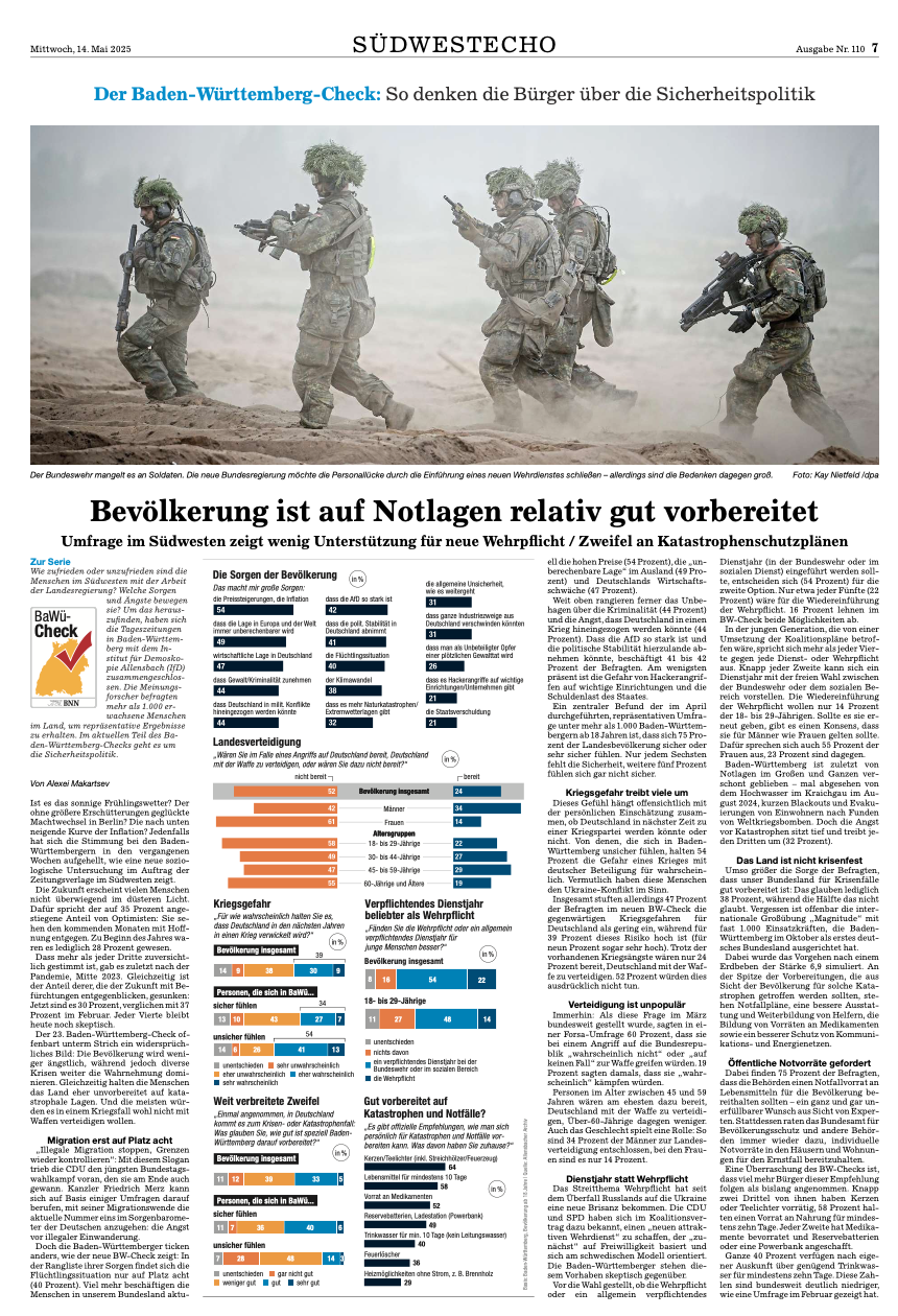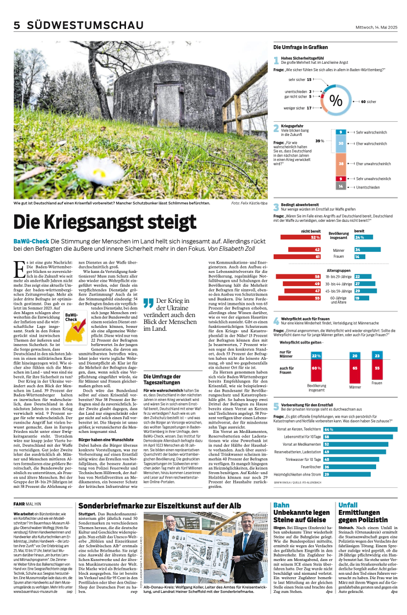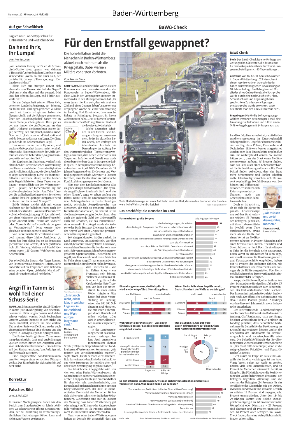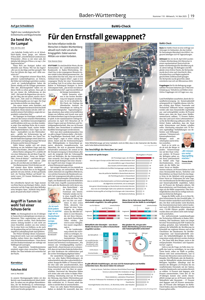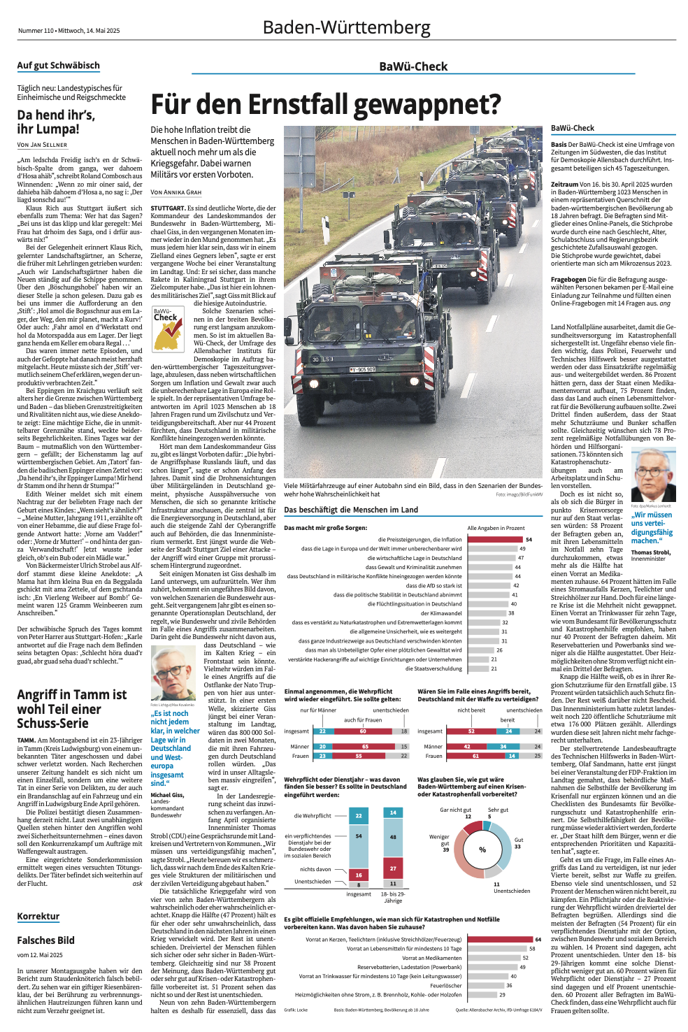 Beim 23. BaWü-Check der baden-württembergischen Tageszeitungen geht es um Zivilschutz und die Verteidigungsbereitschaft der Bevölkerung.