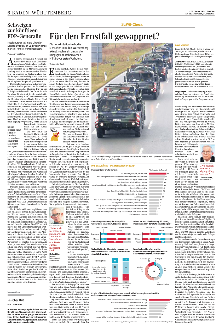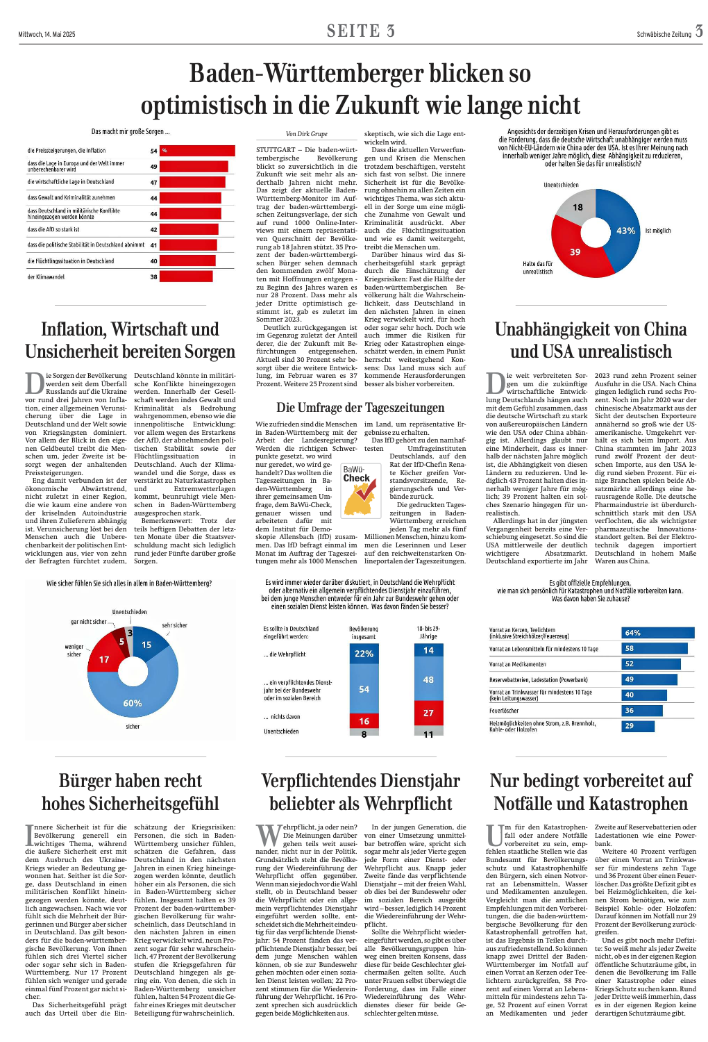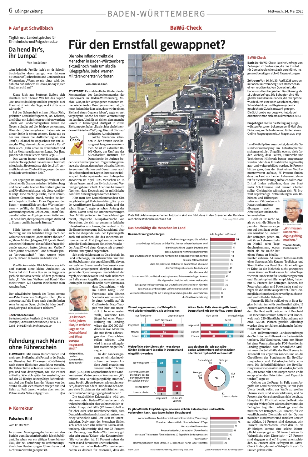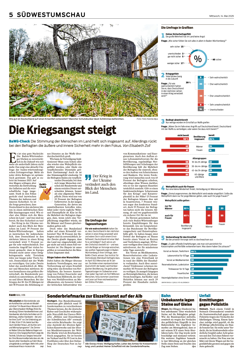 Beim 23. BaWü-Check der baden-württembergischen Tageszeitungen geht es um Zivilschutz und die Verteidigungsbereitschaft der Bevölkerung.