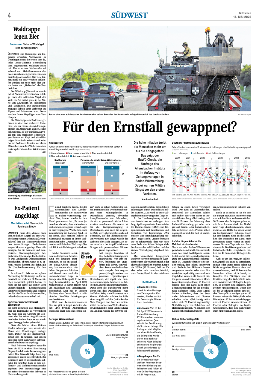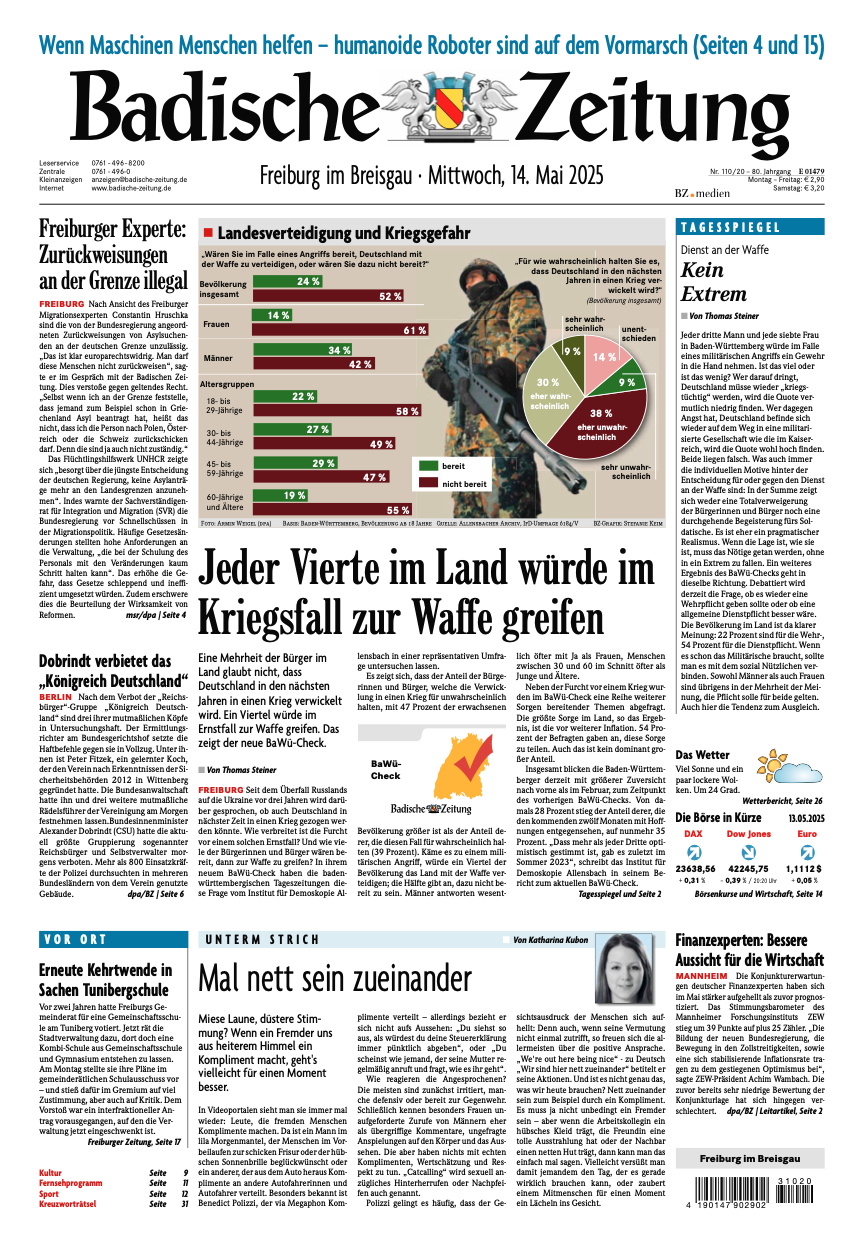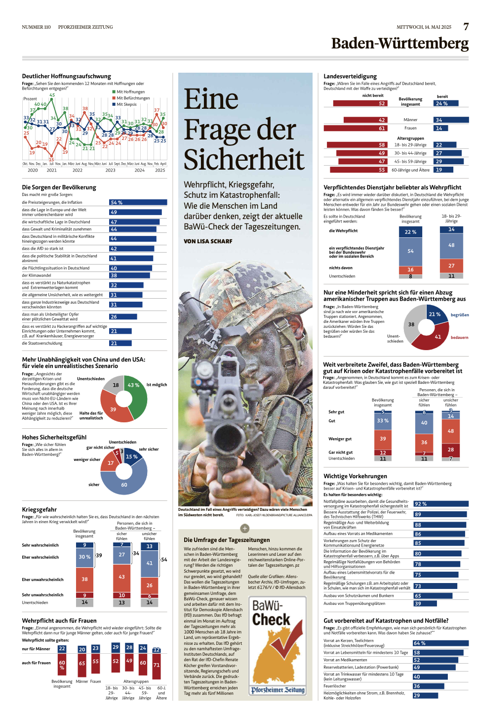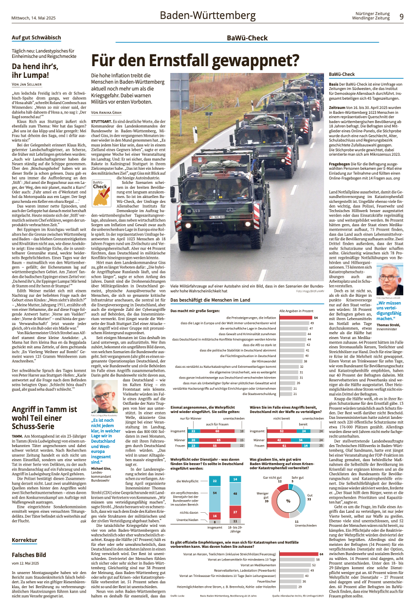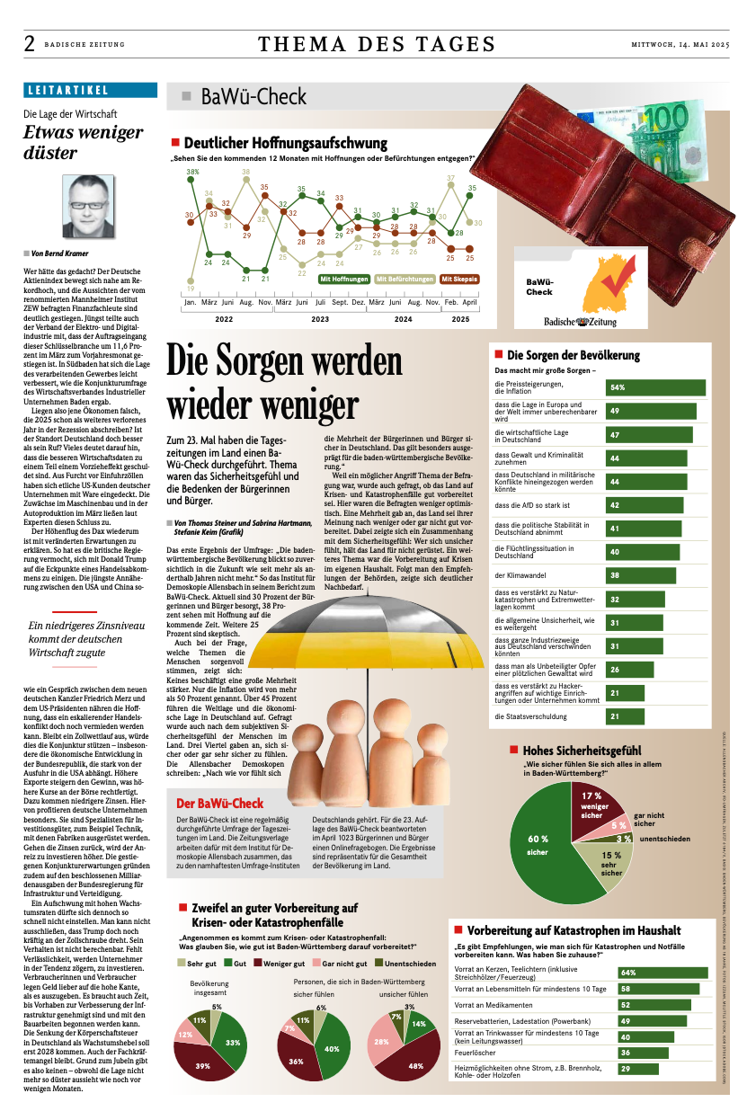 Beim 23. BaWü-Check der baden-württembergischen Tageszeitungen geht es um Zivilschutz und die Verteidigungsbereitschaft der Bevölkerung.