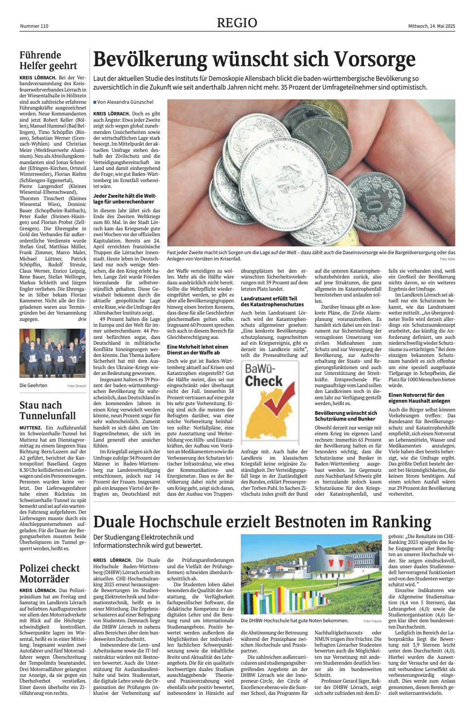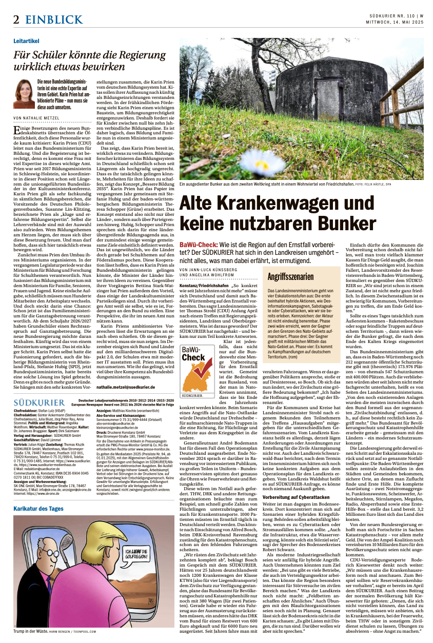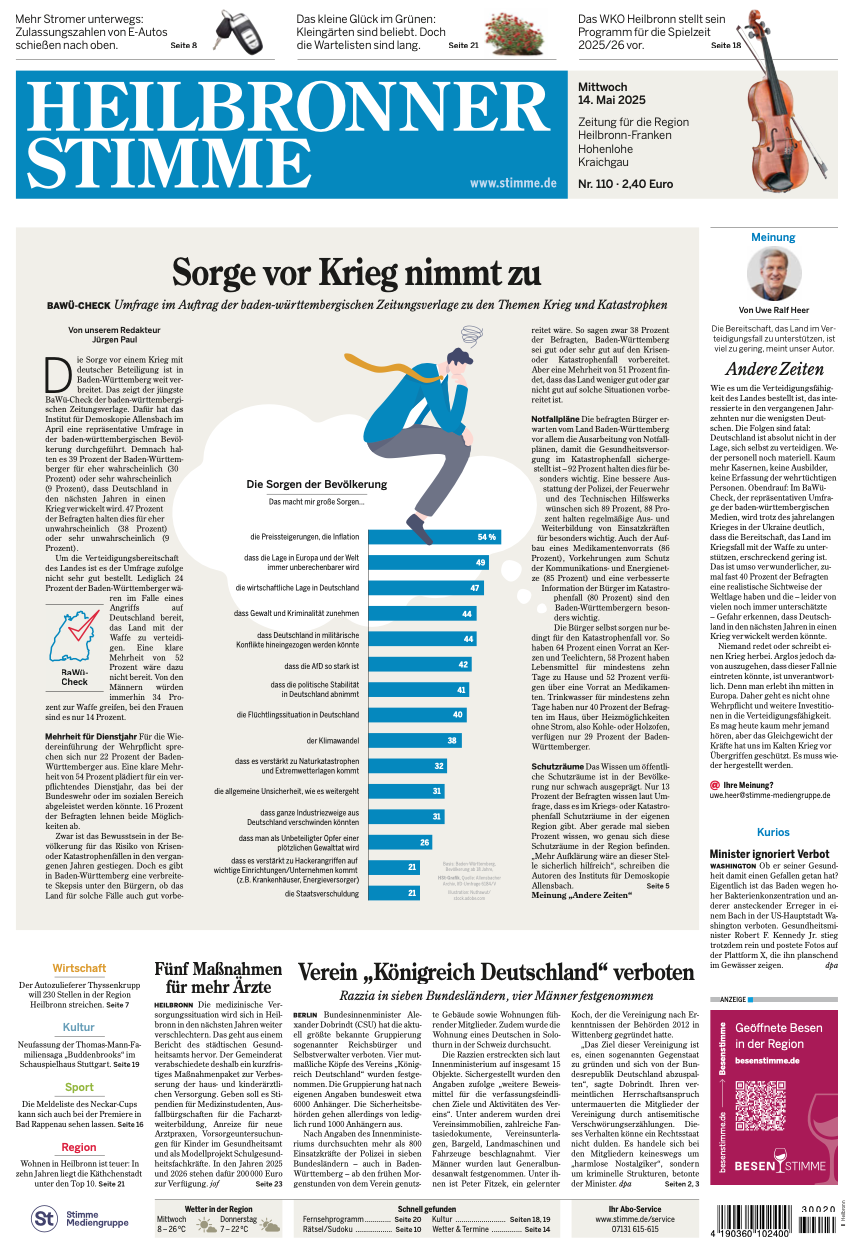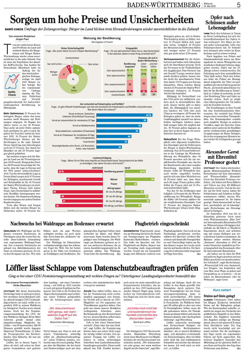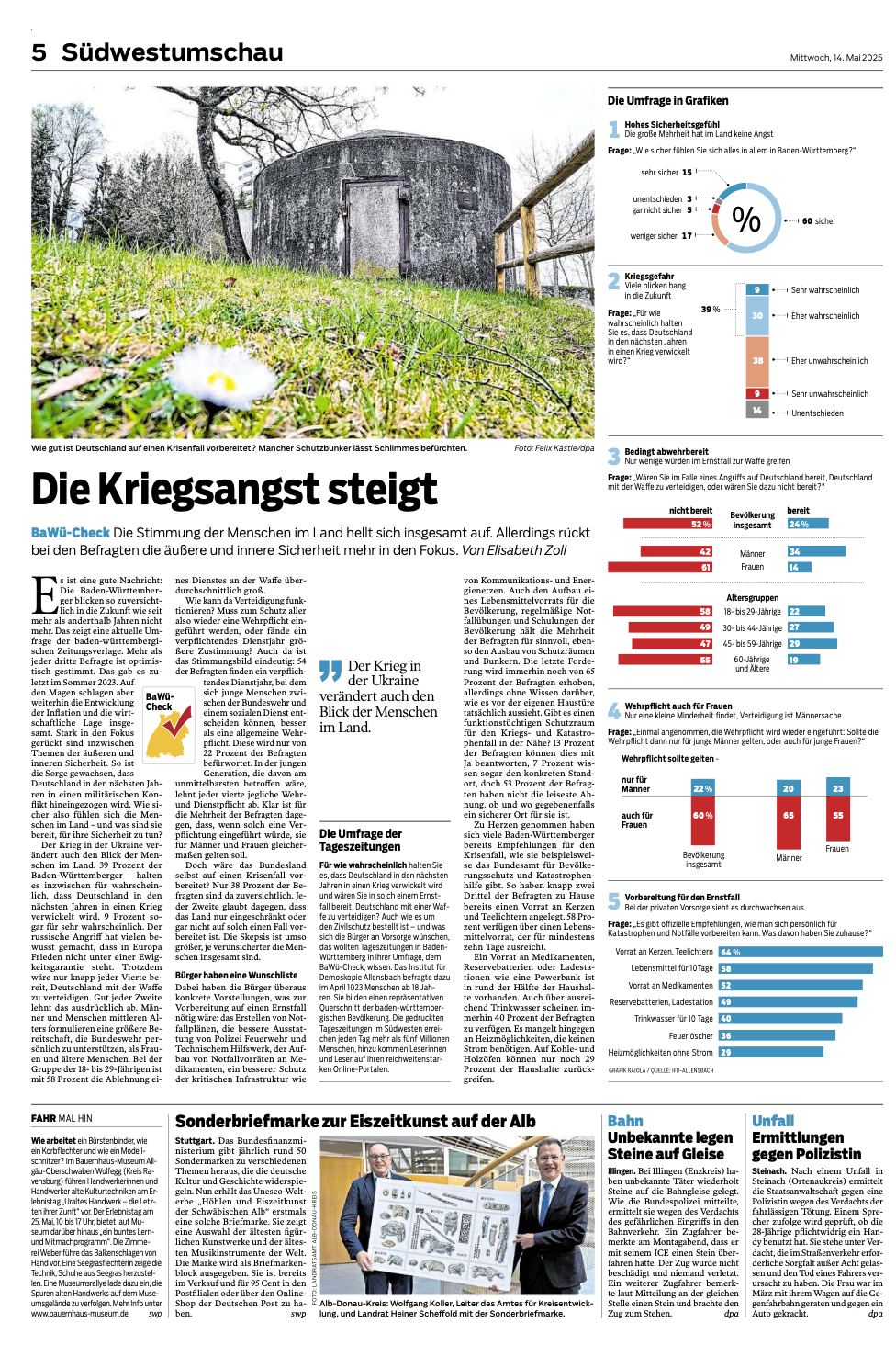 Beim 23. BaWü-Check der baden-württembergischen Tageszeitungen geht es um Zivilschutz und die Verteidigungsbereitschaft der Bevölkerung.